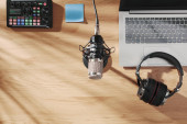 Zdjęcie "Środowisko kinematograficzne biurka z bliskimi ujęciami teksturowanej tkaniny, rozmazanym tłem technologicznym, idealne do kreatywnego użytku." może być wykorzystywane do celów osobistych i komercyjnych zgodnie z warunkami zakupionej licencji Royalty-free. Obraz jest dostępny do pobrania w jakości wysokiej rozdzielczości do 5760x3840.