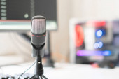 Zdjęcie "Środowisko kinematograficzne biurka z bliskimi ujęciami teksturowanej tkaniny, rozmazanym tłem technologicznym, idealne do kreatywnego użytku." może być wykorzystywane do celów osobistych i komercyjnych zgodnie z warunkami zakupionej licencji Royalty-free. Obraz jest dostępny do pobrania w jakości wysokiej rozdzielczości do 5760x3840.