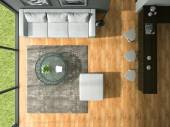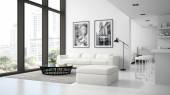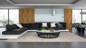 Wnętrza na poddaszu nowoczesny design z czarna sofa 3d renderin
