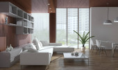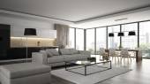 Wnętrza na poddaszu nowoczesny design z 3d render floorl biały
