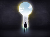 biznesmen patrząc wielki klucz