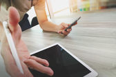 pracownik biurowy kobiet za pomocą cyfrowego tabletu w kawiarni