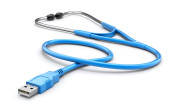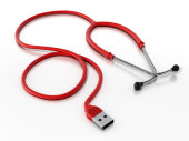 Narzędzie Diagnostyka sieci koncepcja - 3d z wtyczką stetoskop i ethernet