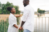 Młoda para przytula się czule do wody, ciesząc się razem ciepłem słonecznego dnia..