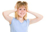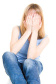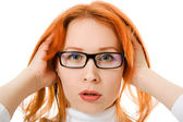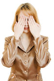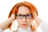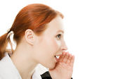biznes kobieta w niebezpieczeństwie na białym tle.