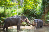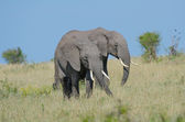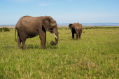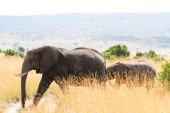 Adult african bush elephants grazing in African savanna