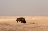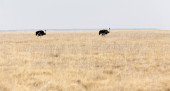 Critically endangered black rhinoceros in African savanna