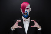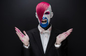 Zdjęcie "Młody człowiek przebrany za Jokera wyraża radość i kreatywność podczas obchodów Halloween." może być wykorzystywane do celów osobistych i komercyjnych zgodnie z warunkami zakupionej licencji Royalty-free. Obraz jest dostępny do pobrania w jakości wysokiej rozdzielczości do 5760x3840.