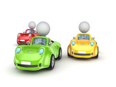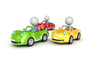 grafika i trzy kolorowe samochody.