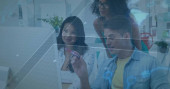 Zdjęcie "Biorąc pięciu przyjaciół pochylony i uśmiechnięty w barze, z selfie smartfona i nakładki danych. Socjalizacja, koleżeństwo, nowoczesny, technologia, wypoczynek, wnętrze, miejskie" może być wykorzystywane do celów osobistych i komercyjnych zgodnie z warunkami zakupionej licencji Royalty-free. Obraz jest dostępny do pobrania w jakości wysokiej rozdzielczości do 5760x3840.