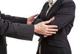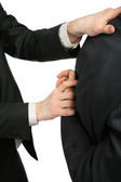 Biznesmen, starając się ukryć jego teczki przez nieznanego człowieka