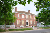Zdjęcie "Widok na zabytkowy Amstel House i otaczający go mur murowany w pochmurny jesienny dzień w Delaware." może być wykorzystywane do celów osobistych i komercyjnych zgodnie z warunkami zakupionej licencji Royalty-free. Obraz jest dostępny do pobrania w jakości wysokiej rozdzielczości do 5760x3840.