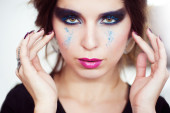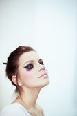Kobieta z jasny różowy makijaż.