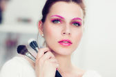 Wizażystka posiada pędzle do pudru