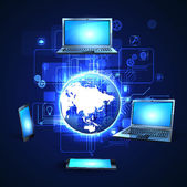 Najlepsza koncepcja internetowa globalnego biznesu. Globus, świecące linie na tle technologicznym. Elektronika, Wi-Fi, promienie, symbole Internet, telewizja, łączność komórkowa i satelitarna