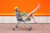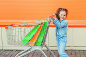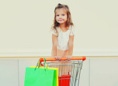 Zdjęcie "Szczęśliwy uśmiechający się dziecko siedzi w koszyku wózka z kolorowych jedy" może być wykorzystywane do celów osobistych i komercyjnych zgodnie z warunkami zakupionej licencji Royalty-free. Obraz jest dostępny do pobrania w jakości wysokiej rozdzielczości do 5760x3840.