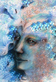 Beautiful fantasy colorful painting of a radiant elven fairy creatures and energy lights, an insight in a fairy realm, face portrait closeup