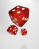 Trzy ułożone kości, British Racing Dice, White Dice, Dahling Dice. 3 Kości miejsce na brytyjskim tle Racing kolorowe. 3 kości
