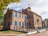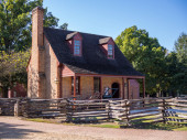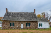 Zdjęcie "Widok głównego domu w John Dickinson Plantation pokazujący mieszankę stiuku i cegły bocznicy z jasnym jesiennym drzewem." może być wykorzystywane do celów osobistych i komercyjnych zgodnie z warunkami zakupionej licencji Royalty-free. Obraz jest dostępny do pobrania w jakości wysokiej rozdzielczości do 5760x3840.