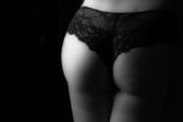 Black and white photography on perfect sexy buttocks of pretty woman in lingerie
