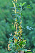 Pasożytniczy dodder polny (Cuscuta campestris) rośnie na polu wśród upraw
