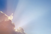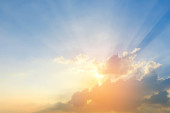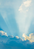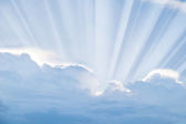 Błękitne niebo i promienie światła świeci się z chmurami