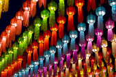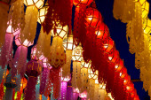 Zdjęcie "Tradycyjne białe Lanna Latarnie wiszące na niebieskim niebie w północnej Tajlandii Temple" może być wykorzystywane do celów osobistych i komercyjnych zgodnie z warunkami zakupionej licencji Royalty-free. Obraz jest dostępny do pobrania w jakości wysokiej rozdzielczości do 5760x3840.