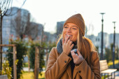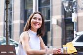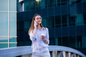 Zdjęcie "Uśmiechnięta przedsiębiorczyni rozmawiająca przez smartfona, delektująca się mrożoną latte matcha w kawiarni. Pojęcie pracy zdalnej, połączenia biznesowego i nowoczesnego miejskiego stylu życia zawodowego." może być wykorzystywane do celów osobistych i komercyjnych zgodnie z warunkami zakupionej licencji Royalty-free. Obraz jest dostępny do pobrania w jakości wysokiej rozdzielczości do 5760x3840.