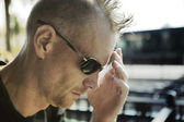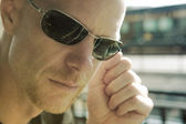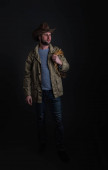 człowiek w kowbojski kapelusz gospodarstwa pistolet