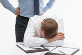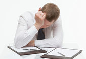 Zdjęcie "Zmęczony clerck siedzi przy stole" może być wykorzystywane do celów osobistych i komercyjnych zgodnie z warunkami zakupionej licencji Royalty-free. Obraz jest dostępny do pobrania w jakości wysokiej rozdzielczości do 5760x3840.