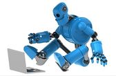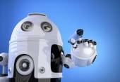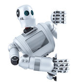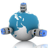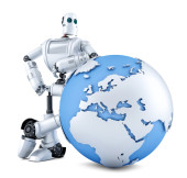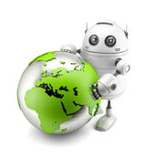 Glob w ręku robota. Koncepcja technologii. Na białym tle. Zawiera ścieżkę przycinającą