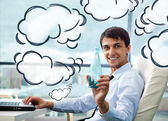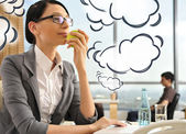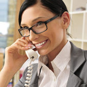 portret piękne Młoda kobieta interesu na telefon i hap