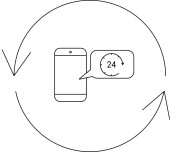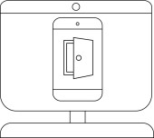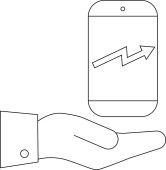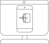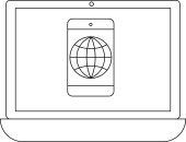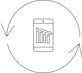 Minimalistyczna ikona sztuki linii przedstawiająca smartfona z okrągłą strzałką wskazującą proces synchronizacji lub aktualizacji danych, odpowiednia dla tematów technologicznych lub komunikacyjnych.