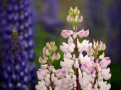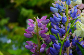 niektóre łubin (Lupinus polyphyllus), rośliny ozdobne wysoko cenione za ich kolorowe kwiaty ułożone w grona w Ushuaia Tierra del Fuego Patagonia