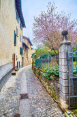Zdjęcie "Kamienny chodnik przechodzący pod starym budynkiem mieszkalnym w szwajcarskiej wiosce Comano, Ticino, Szwajcaria" może być wykorzystywane do celów osobistych i komercyjnych zgodnie z warunkami zakupionej licencji Royalty-free. Obraz jest dostępny do pobrania w jakości wysokiej rozdzielczości do 5760x3840.
