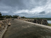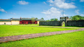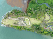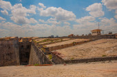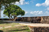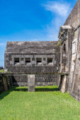 Róg z działami chroniącymi wejście do hiszpańskiego kolonialnego fortu San Lorenzo w Panamie koło Colon