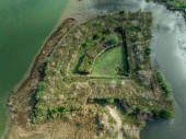 Widok z lotu ptaka na San Lorenzo Fort strzegący wejścia do rzeki Chagres w Panamie