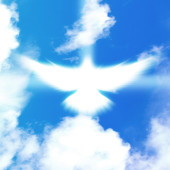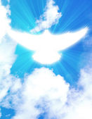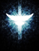 lśniący gołąb z promieniami na ciemnościach
