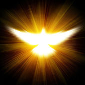 lśniący gołąb z promieniami na ciemnościach