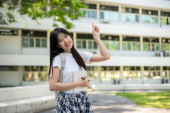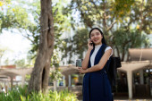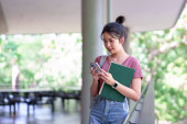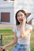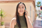 Zdjęcie "Azji młoda kobieta szczęśliwie mówi na smartfonie na zewnątrz Dorosła kobieta cieszy się rozmowy Komunikacja w środowisku miejskim jasny dzień" może być wykorzystywane do celów osobistych i komercyjnych zgodnie z warunkami zakupionej licencji Royalty-free. Obraz jest dostępny do pobrania w jakości wysokiej rozdzielczości do 5760x3840.