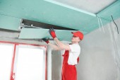 Zdjęcie "Stolarz z płytą gipsowo-kartonową i śrubokrętem" może być wykorzystywane do celów osobistych i komercyjnych zgodnie z warunkami zakupionej licencji Royalty-free. Obraz jest dostępny do pobrania w jakości wysokiej rozdzielczości do 5760x3840.