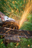 Ostrzenie i cięcia żelaza przez dysk ścierny maszyny