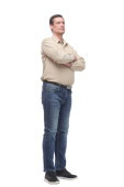Zdjęcie "pełnej długości portret uśmiechnięty człowiek z bronią składany" może być wykorzystywane do celów osobistych i komercyjnych zgodnie z warunkami zakupionej licencji Royalty-free. Obraz jest dostępny do pobrania w jakości wysokiej rozdzielczości do 5760x3840.