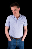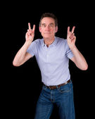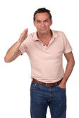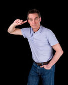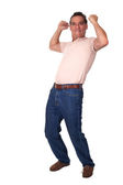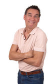pełnej długości portret uśmiechnięty człowiek z bronią składany