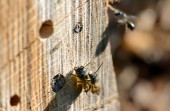mężczyzna dzikich pszczół, pływające przed owad schronienie.