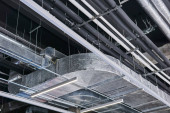 Rury systemu wentylacji na suficie nowoczesnej fabryce roślin budynku