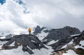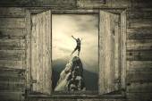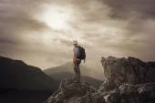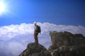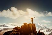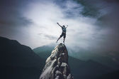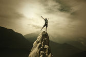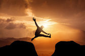 Skaczący człowiek na szczyt