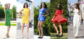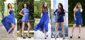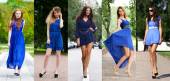 Kolaż z pięciu pięknych modeli w niebieska sukienka