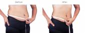 kobiety do pomiaru tłuszczu z brzucha, sama, przed i po odchudzaniu