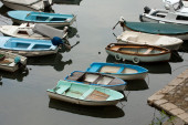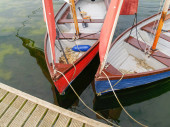 łodzie w porcie małe Torno w jezioro como we Włoszech